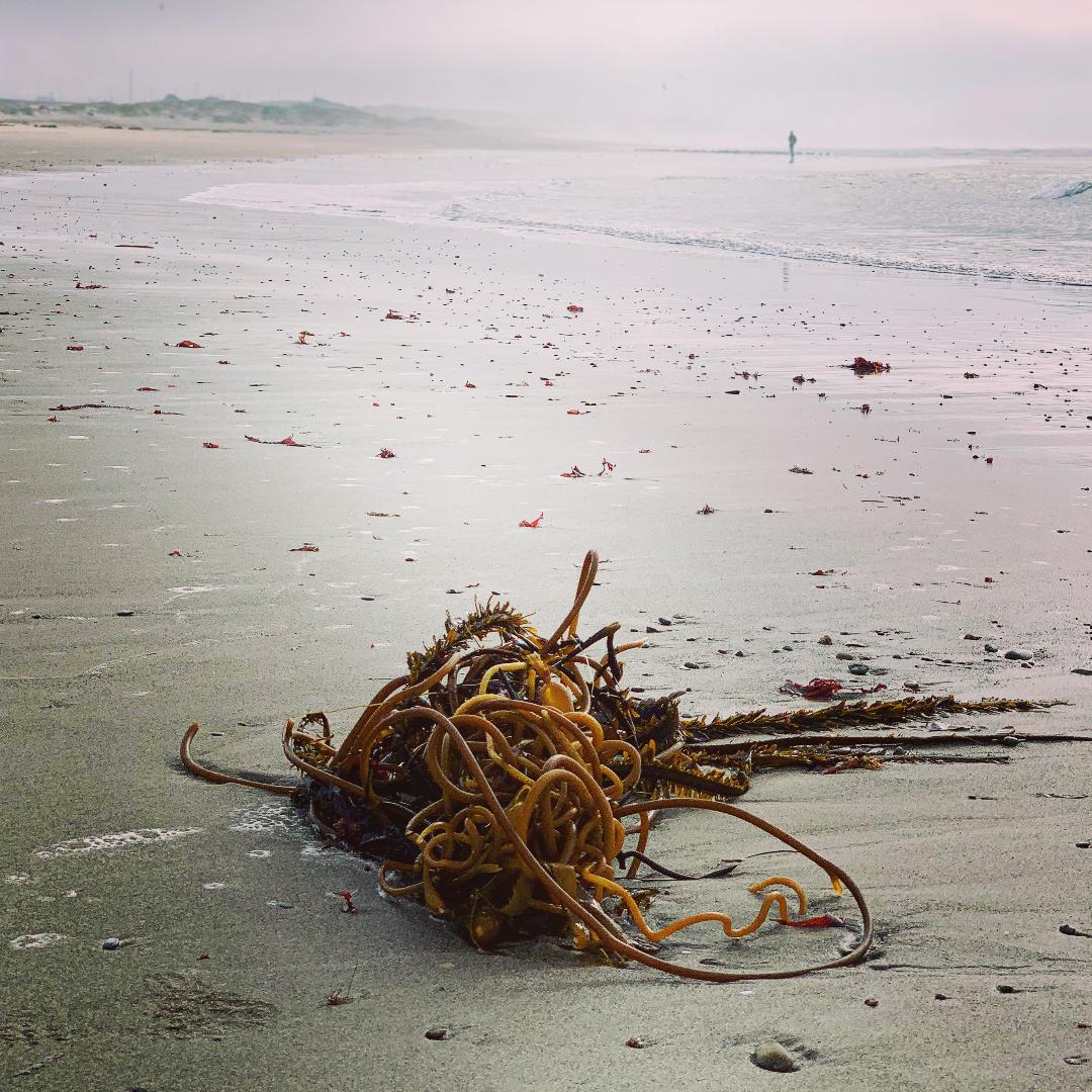 Бросив якорь недалеко от белого песчаного пляжа, я накачала байдарку. Мишка, не дожидаясь приглашения, тут же в неё запрыгнул. Оказавшись на берегу, Мишка ожил, развеселился, и стал носиться за чайками. Вскоре он нашёл выброшенный на берег кусок кельпа – бурую водоросль с длинными листьями. Листья трепыхались на ветру, как ладошки, и кельп казался ему живым созданием. Мишка атаковал водоросль слева и справа, а потом, закусив стебель, как удила, бросился с ним вдоль прибоя, изображая из себя скаковую лошадь. На берегу моему щенку было намного лучше, чем на борту движущегося «Флибустьера».