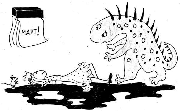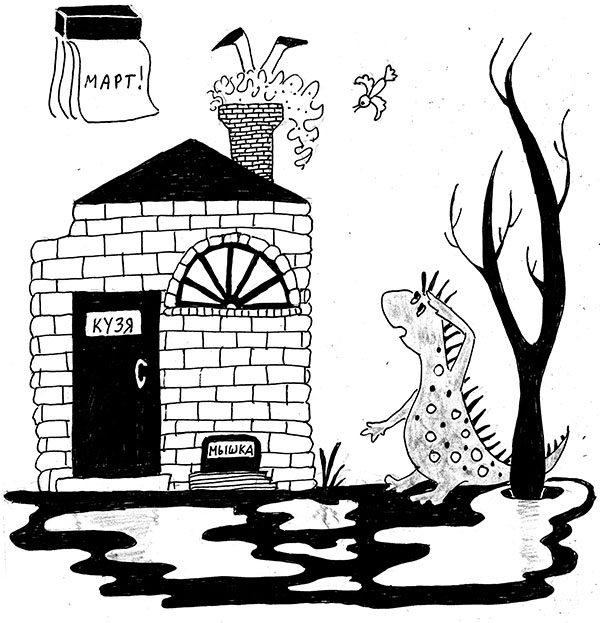 Однажды в марте наступила весна. По крайней мере она пыталась это сделать. Не её вина, что по-ка ничего не вышло. Итак, в начале марта после сильной бури, традиционной для уральской весны, дракон Кузя прибежал к трёхголовому дракону Потапову и сказал: