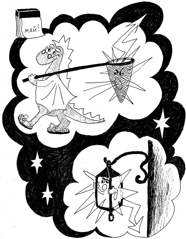 – Сейчас мы её сачком поймаем, – сказал дракон Кузя. – Подвесим на фонарь, для уличного освещения.