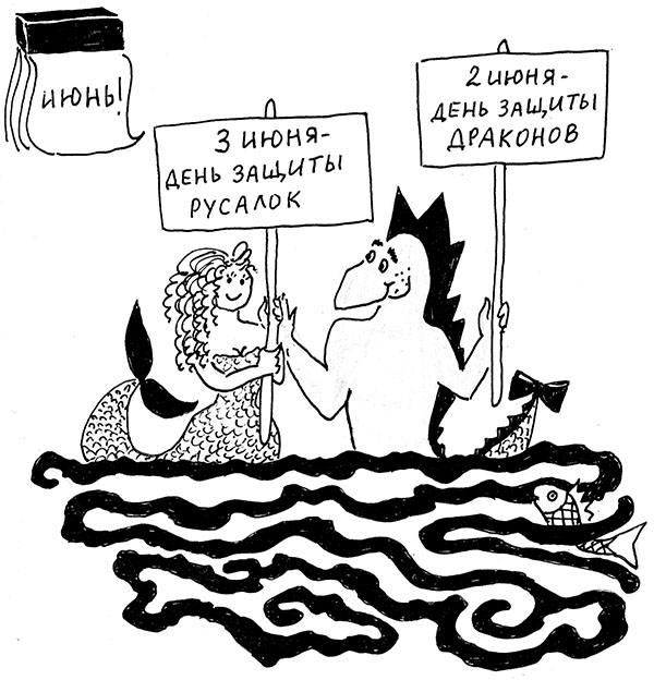 – А Дня защиты русалок почему-то нет, – огорчилась Русалка.