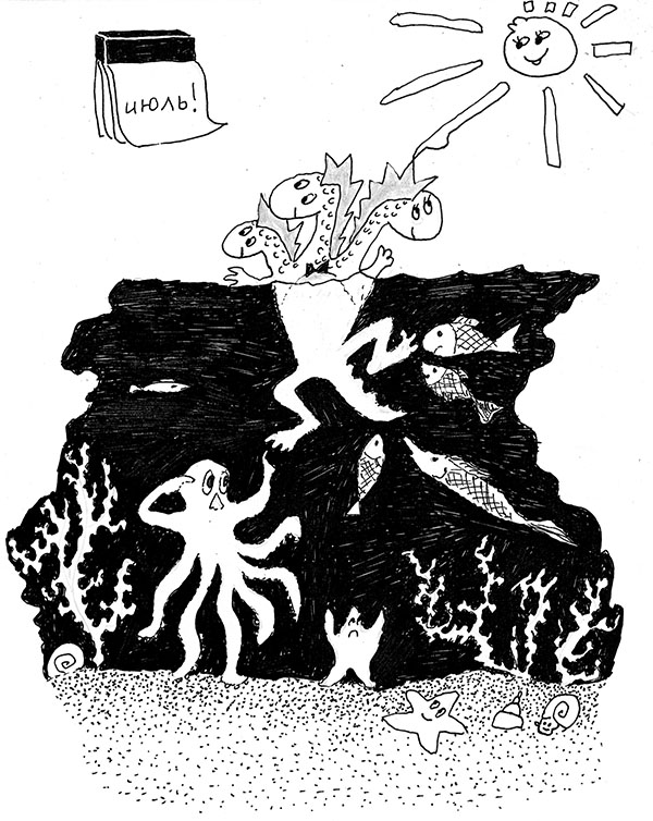 – Не вздумай, – заволновались все. – Ты же огнедышащий. Вскипятишь пруд, а там, между прочим, рыбы и всякие микробы. Ты о них подумал?