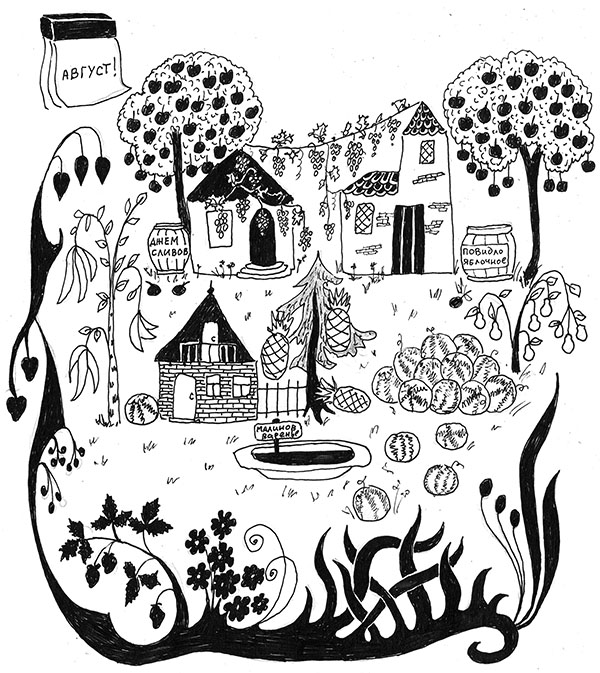 Дом трёхголового дракона Потапова до того зарос виноградом, что входную дверь не надо было запирать – она и так прилипала к косяку, пропитанная сладким виноградным соком. Принцесса, жена Потапова, с упоением варила варенье из всего этого изобилия.