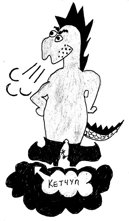 – Где мое ружьё? – спросил огнедышащий дракон Кепчуп. Хотя все знали, что ружья у него не было, а он просто плевался огнём по мере надобности.