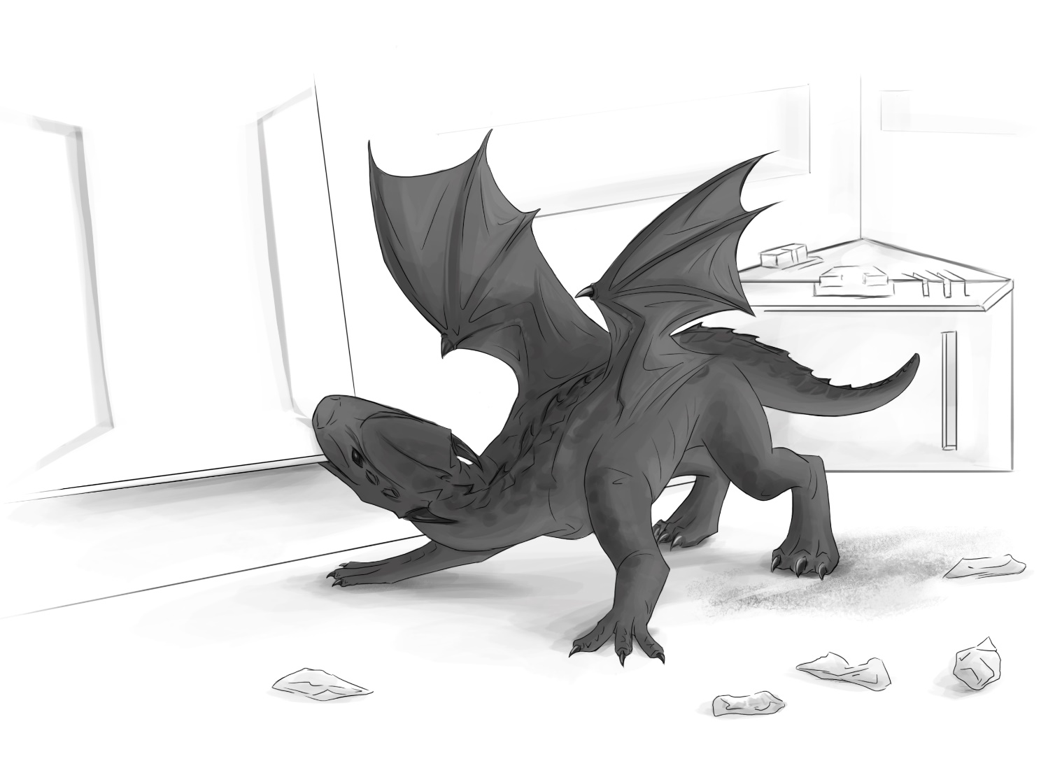Дракон времени зря не терял, успев поцарапать стены (ничего, затянутся!), разорвать и опробовать содержимое пакета с мусором (моя вина, не загрузила с вечера в утилизатор), извозиться в какой-то дряни (на поверку оказавшейся аналогом кофе) и напрудить лужу прямо посреди кухни (а вот за это не прощу!). Сейчас шкодник сосредоточенно грыз угол откидного стула и при первой же попытке отодрать его от предмета интерьера принялся грозно рычать и булькать горлом, будто внутри него было еще одно существо, которое не просто там сидело, а плавало в чем-то вязком и противном.