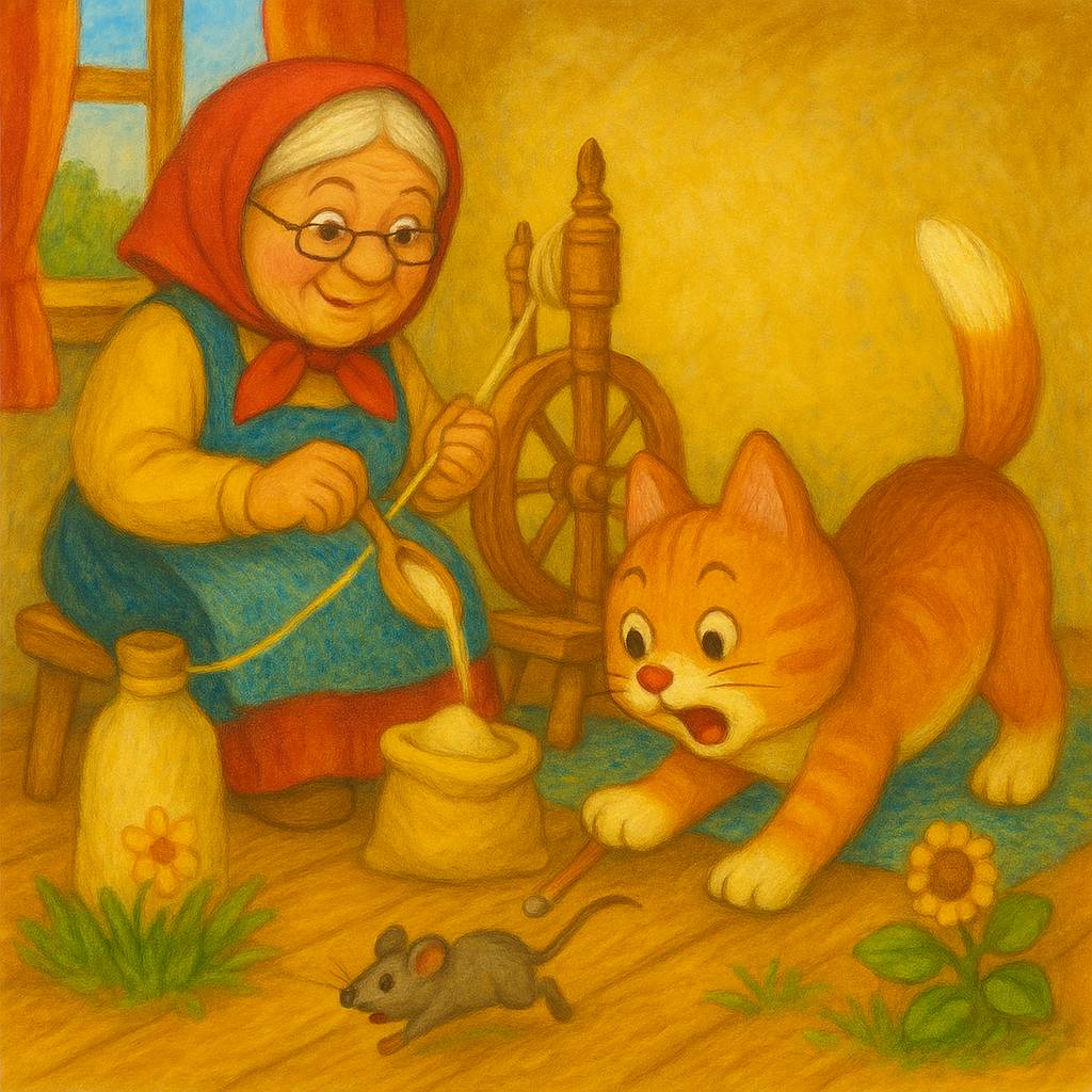 Вот однажды бабушка пошла на базар, а Мурчик и Бобик остались дома. Сидят на крылечке, солнышко греет, птицы поют.