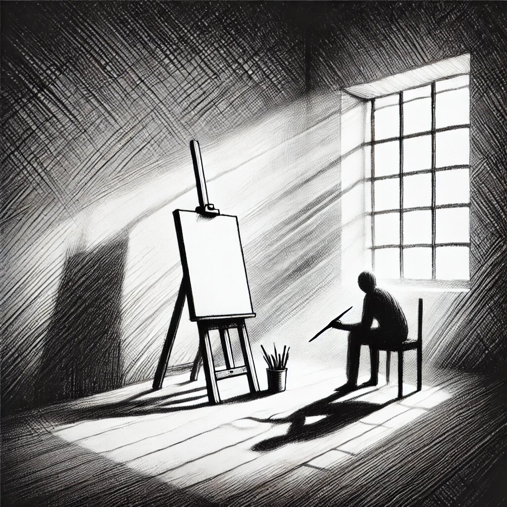 Её рука с кистью зависла над листом. Пальцы дрожали, как будто сопротивляясь собственной воле. Белый лист, такой пустой, такой немой, смотрел на неё в ответ, вызывая внутри нестерпимую боль.