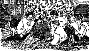 – Щенок! Сарынь! – сдавленно произнес он, и. прихрамывая, побрел ко дворцу. Петр, задетый за живое (еще бы, осмелились тронуть его любимца!), раздувая ноздри, бешено глядел на Янку. Она тут же пожалела, что связалась с Алексашкой, и ей стало не по себе. Она беспомощно оглянулась на ребят. Иевлев одними губами подсказывал: