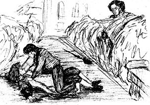 Простившись с Анной, Петр пошел на поиски Янки, услышал какую-то возню, раздвинул кусты и увидел: Янка катается в пыли и мутузит (Петр сразу узнал) сына лучшего корабельного мастера из Голландии Ренсена.