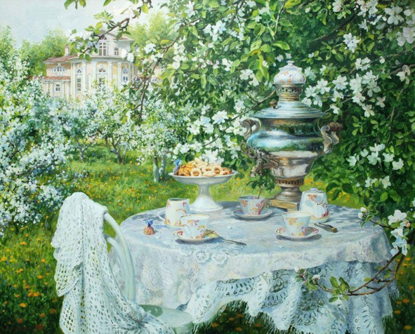 Мне нужно в этот сад,Я там была когда-то…В нем прежней жизни правильный уклад.И венских стульев мягкие изгибы знакомы пальцам.Скатерть, кружева… в корзинке пяльца,Сочная трава!Все помню! И пчелы жужжанье,И птиц весенних щебетанье!И стол, под яблоней цветущей, наш…И дом! Уж все теперь мираж…Но, просится душа назадТуда, где ты всему был рад.21 мая 2018 г.