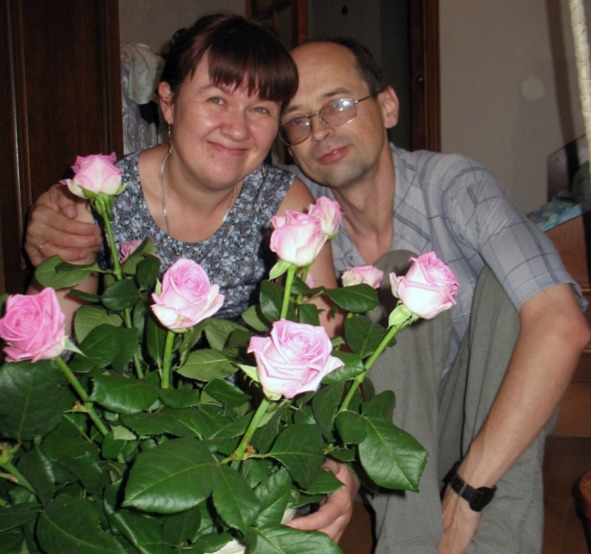 На этом фото я и мой любимый муж. Он подарил мне целое ведро роз на очередной юбилей нашей семейной жизни
