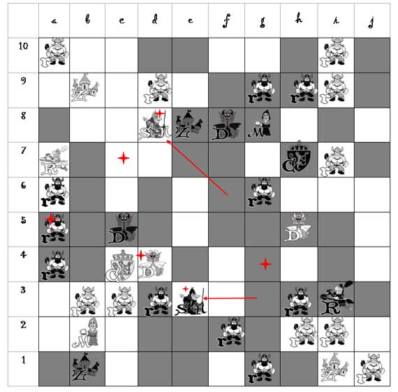 (Темный разбойник срубает Светлого Рыцаря на поле a6)