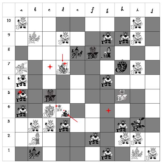 (Темные Странник и Наемник перемещаются к Светлому Дракону на поле d4)