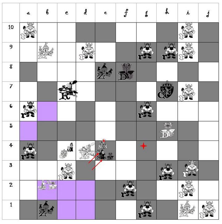 (Светлые Странник и Наемник перемещаются на поле е4 к Темному Дракону)