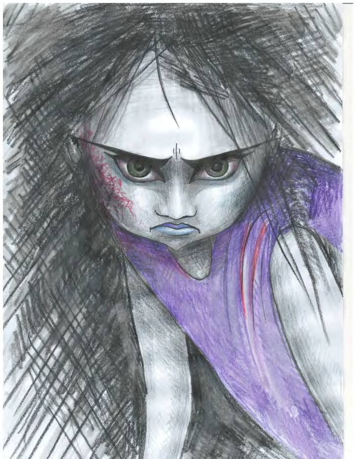 Она обладала мрачной наружностью. Спутанные ломаные волосы, могильный взгляд, немытые лицо и руки дышали ненавистью ко всему живому и самой себе. Кроме того, на правой части ее лица виднелся давнишний шрам от ожога, который делал ее внешность еще более зловещей.