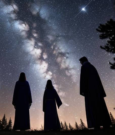 Монахи одновременно откинули капюшоны и подняли взгляды к звёздному небу в поисках подтверждения тому, что только что почувствовали. Яркий свет новой звезды, появившейся чуть восточнее места, где находилась дубовая чаща, скрывающая поляну, высветил лица троих мужчин, стоящих на ней. Старший из них уже перешагнул пятидесятилетний рубеж. Его когда-то красивые, волнистые каштановые волосы посеребрила седина, тонкие губы улыбались, словно их обладатель купался в тёплом свете рождённой звезды, черты лица выражали врождённое благородство, которое не портили даже глубокие морщины, исполосовавшие его лоб, и мелкой сеткой расположившиеся вокруг миндалевидных карих глаз. В этом человеке было столько уверенности, что просто не могло возникнуть мысли, что он может быть хоть в чём-то неправ. Среднему было двадцать пять. Голубоглазый блондин, он свёл бы с ума многих девушек, если бы не монашеское одеяние и не по возрасту серьёзный взгляд. Рядом с ним возникало ощущение покоя и защищённости, чувствовалось, что какова бы ни была ситуация, он не пожалеет собственной жизни, оберегая жизни тех, кто находится подле него. Младший был совсем юн. От роду семнадцати лет, он смотрел на мир широко открытыми серыми глазами. Детский взгляд на жизнь, сочетающийся с самоотверженностью и юношеским максимализмом делал его сильным духом и уязвимым одновременно. Сейчас он восторженно смотрел на новую звезду, вспоминая древние легенды и абсолютно забыв о том, что её рождение, возможно, означает его смерть. Резкий порыв ветра раздул простые серые одеяния монахов, до этого крупными складками спадающие до земли. Затем, переменившись, обтянул одеждами не по-монашески хорошо сложенные, мускулистые тела мужчин, стоявших на ночной поляне. Звезда медленно уменьшила сияние, исчезнув в темноте ночного неба, ветер стих, фигуры монахов вновь окутал мрак безлунной ночи, скрыв их от взглядов обитателей леса.