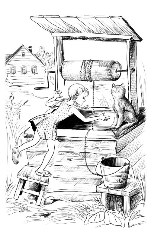 Галя, вытирая слёзы, побежала на улицу. Кот сидел на краю колодца и мечтательно смотрел куда-то вдаль.