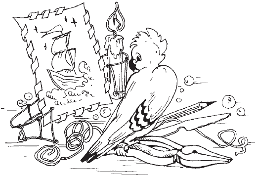 Затем из бумаги того же цвета вырезать круг, ромб или другую фигуру размером 12–15 см в поперечнике. Из бумаги разных цветов вырезать несколько перьев-лепестков, глазки, носик, ротик и все наклеить, соответственно, на полоску и фигурку.