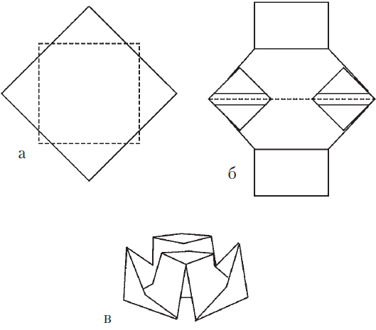 Затем от линии сгиба загнуть с обеих сторон уголки (рис. 4 б).