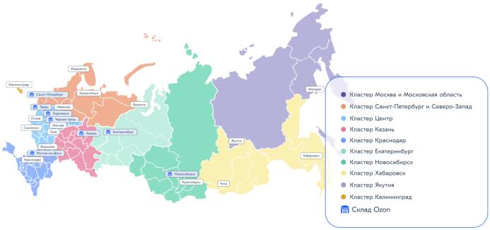 На «Озоне» есть система ВРЦ – автоматическое распределение поставок по региональным кластерам. Программа анализирует, куда лучше отправить ваш товар на основе продаж в этих регионах. Вам остается только подкорректировать и отправить поставку. Не стоит слепо доверять автоматическому распределению, возможно, на предложенных складах просто много свободных слотов, поэтому вам его предлагают.