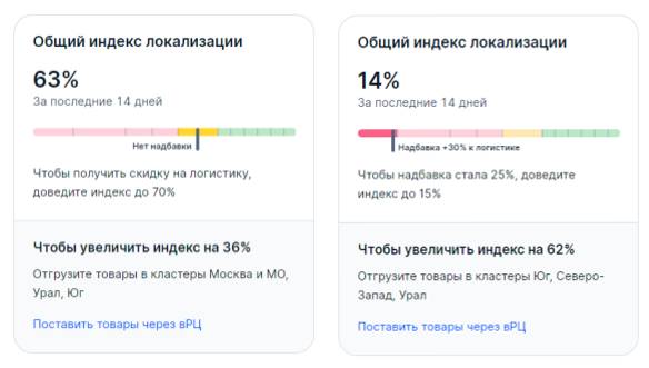 Чем быстрее ваш товар будет доставлен до покупателя, тем выше в поиске данного региона он будет отображаться. И наоборот, ваш товар может вовсе не показываться в каком-то городе или отображаться с надписью «В ваш регион товар не доставляется». Помните, потенциальный покупатель находится везде, дайте ему возможность купить именно ваш товар. К тому же с недавнего времени «Озон» внедрил систему надбавки на логистику, если ваш индекс локализации слишком низкий – стоимость логистики увеличится.