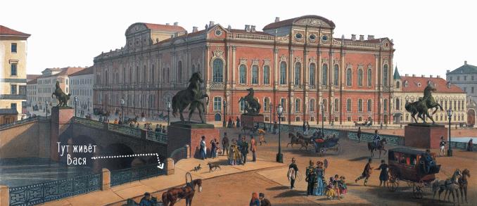 Дворец творчества юных находится в «Дничковом дворце. Это. между прочим, самое старое здание, сохранившееся на Невском. Когда-то в нём жили цари и князья. «А потом дворец отдали детям, чтобы они ходили на всякие кружки и занимались чем-нибудь интересным. Именно туда ездит Василиса на музыкальные занятия.