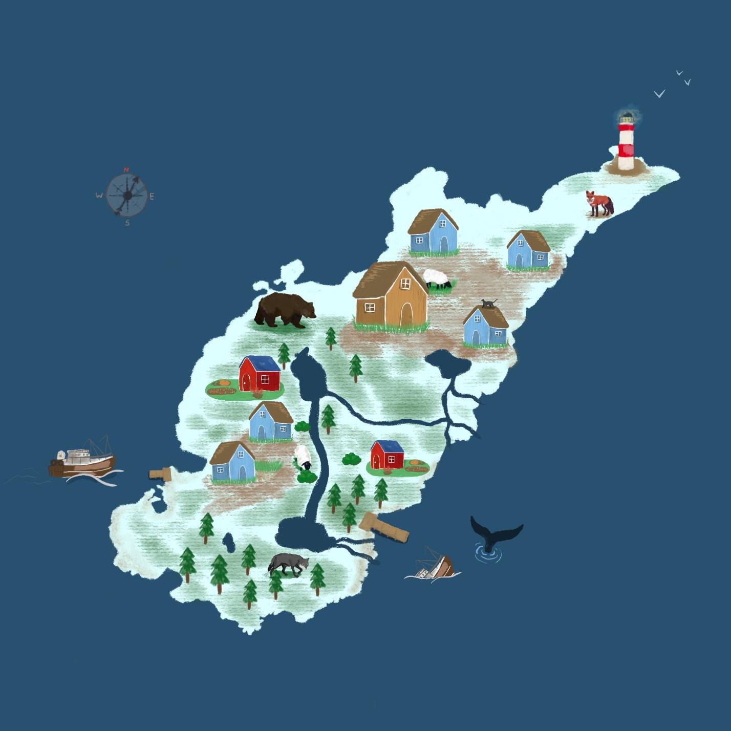 Деревня росла и в лучшие дни насчитывала несколько тысяч дворов. Люди ловили рыбу и торговали с Большой землей, на высоком утесе даже возвели полосатый красно-белый маяк, стал курсировать паром. А потом на материке построили первый завод и спустили на воду первый траулер. Рыбаки к произошедшему отнеслись с опаской, но пока еще никто всерьез не верил, что такие машины способны заменить натруженные человеческие руки, лично осматривавшие каждую рыбешку. Но траулер закинул свои сети и поднял из глубин 60 тонн улова, а затем еще столько же, да еще больше. Рыбаки пожали плечами, подождали еще пару лет и свернули свои снасти. Кто-то бросил все как есть и перебрался ближе к большому городу, а кто-то аккуратно разобрал все до досточки, до последнего гвоздя и уплыл туда, куда заводы еще не успели добраться.