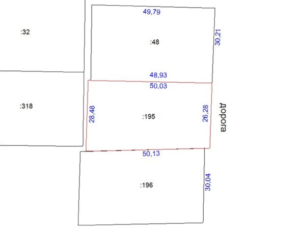 Участок моего клиента имеет площадь 1500 кв. м, что соответствует размеру 30 * 50 м. Согласно генеральному плану, соседние участки тоже должны быть площадью 1500 кв. м и размером 30 * 50 м.