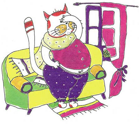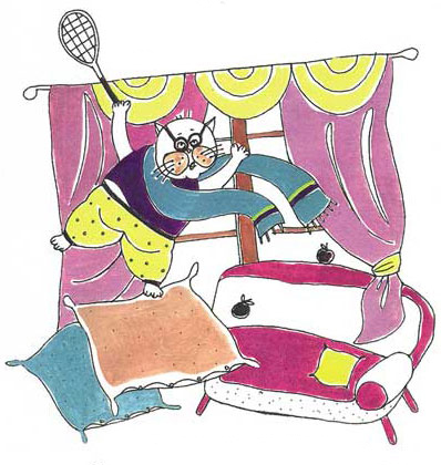 По диванам, по подушкамИ по модным шторам в рюшкахПронесётся Обормот,Замарает всё, порвёт…