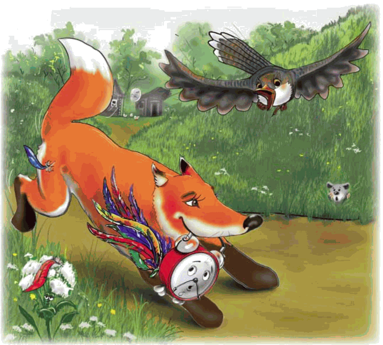 И задумал будильник пойти против собственной часовой стрелки. Попробовал… и уснул. И снится будильнику: сидит он вместе с кукушкой на заборе, хвост распушил, шпорами побрякивает. И вдруг, откуда ни возьмись – лиса! Подпрыгнула, зубами его схватила, да наутек!