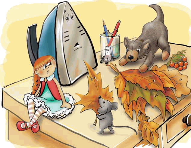 Катя очень расстроилась. Вернувшись домой, она села за письменный стол и долго перебирала уже ненужные листья, над которыми столько трудилась. А потом мама позвала ее кушать.