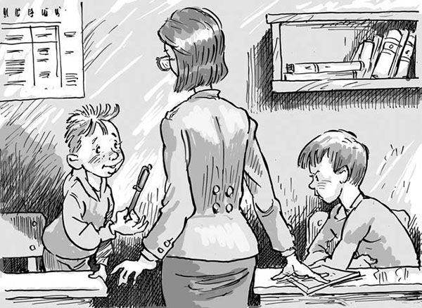 – Не прячь! – строго сказала учительница. – Дневник мне сейчас понадобится. Она открыла нужную страницу. Но ручки под рукой не оказалась.