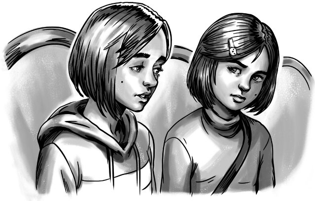 Кристина опустилась на кресло, и Тася увидела у неё на щеке родинку: «На правой. А у меня на левой. Как будто отражение в зеркале!» Тася ещё раз посмотрела на Кристину. «Не так уж и похожи. Я не такая худая».