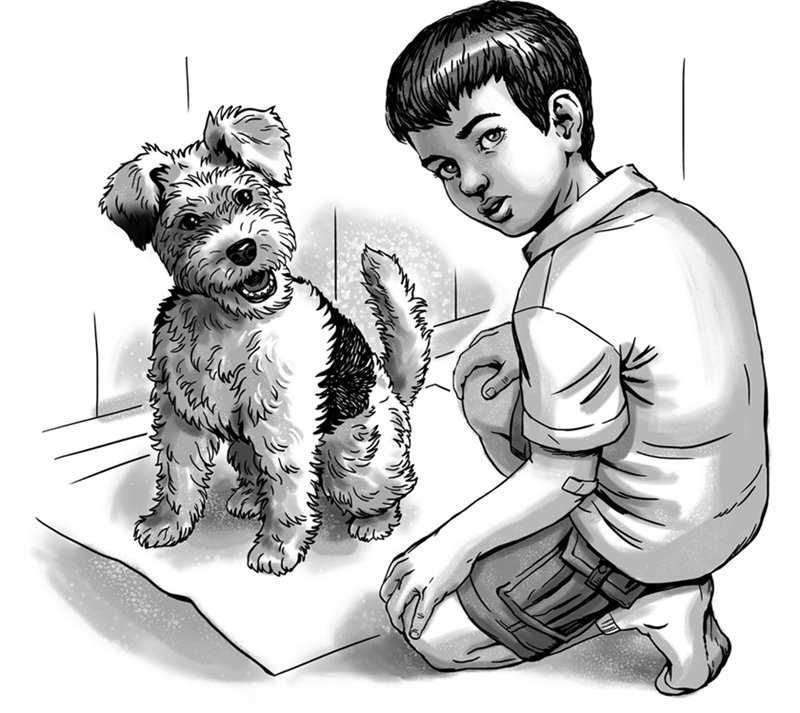 У Пети никогда не было домашних питомцев, и, честно говоря, не очень-то и хотелось. Вот что теперь делать? Сказать собаке «привет» как-то глупо. Скомандовать «дай лапу», раз умеет? Нет, грязная она всё-таки. Вот помоется – тогда…