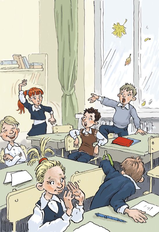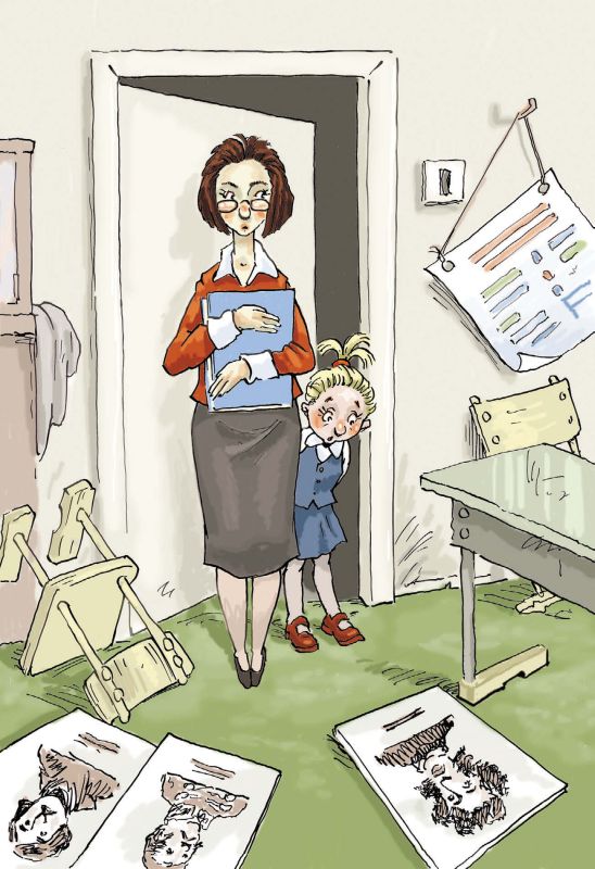 – Что теперь делать? – забеспокоилась маленькая Вика, которая, несмотря на гиперактивность, всётаки любила учиться. Может, вы со мной одной урок проведёте… на подоконнике? – И тут же полезла в рюкзак за пеналом и тетрадкой. Но Елене Николаевне было не до индивидуальных занятий.