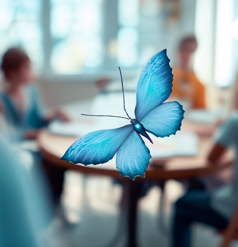Вот Тони в средней учебной группе сидит на коврике в окружении товарищей. В его руках – модель бабочки, над которой он работал в течение нескольких недель. Дети внимательно рассматривают произведение мальчика. Наконец, Тони демонстрирует свой проект в движении, голубая бабочка порхает над головами преподавателя и учеников, умело облетая различные препятствия.
