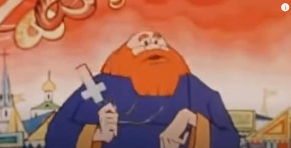 Видят, поп стоит степенный, короб рядышком с товаром.