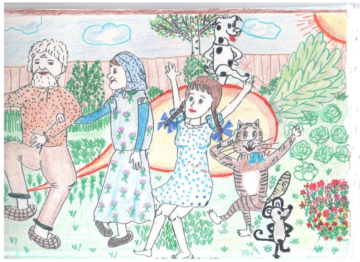 Дед ,обняв, вцепился в репку, бабка в дедку за штаны,