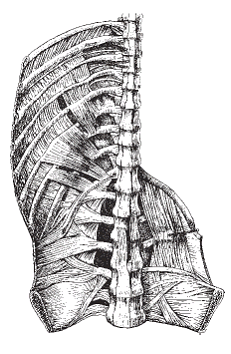 Грудной отдел позвоночника служит местом прикрепления 12 пар ребер. 10 верхних пар ребер соединяются с лежащей спереди грудиной и образуют грудную клетку, в полости которой расположены важнейшие органы – сердце и легкие.