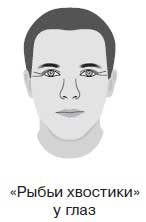 Морщины, отходящие от внешнего угла глаза в виде так называемого «рыбьего хвоста» и доходящие до виска, означают хитрый характер и выдают ловкого бизнесмена. Кроме того, такой человек не склонен хранить верность в браке, легко разводится. «Рыбий хвост» указывает и на любвеобильность – частую смену половых партнеров. Если эти «лучики» заметны уже к двадцати годам или если две-три линии загибаются кверху, то это значит, что человек в течение жизни вступит в брак несколько раз.
