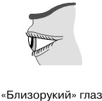 Тип глаза. «Близорукий»: глаз находится в продольной, узко прорезанной глазной щели, внешний угол век приподнят. Брови приподняты к вискам, ресницы густые и короткие.