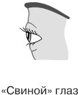 Тип глаза. «Свиной»: маленький глаз находится в очень узкой глазной щели, веки тяжелые, зрачок «бегающий». Брови и ресницы небольшие, редкие.