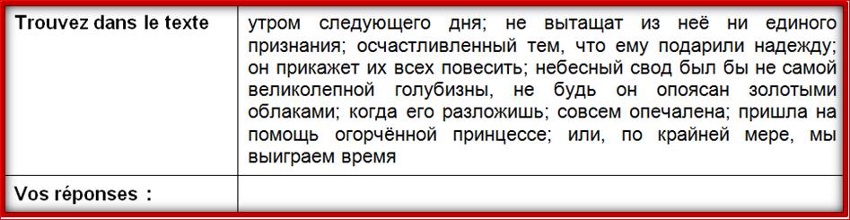 1. Posez trois questions pour situer et décrire l’action du conte (quand ; où ; comment), répondez à ces questions et faites le devoir qui suit ce passage!