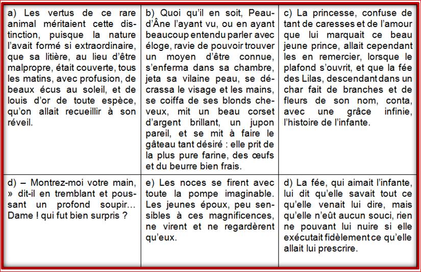 17. Retrouvez les fragments du conte qui conviennent à six images du tableau ci-dessus !