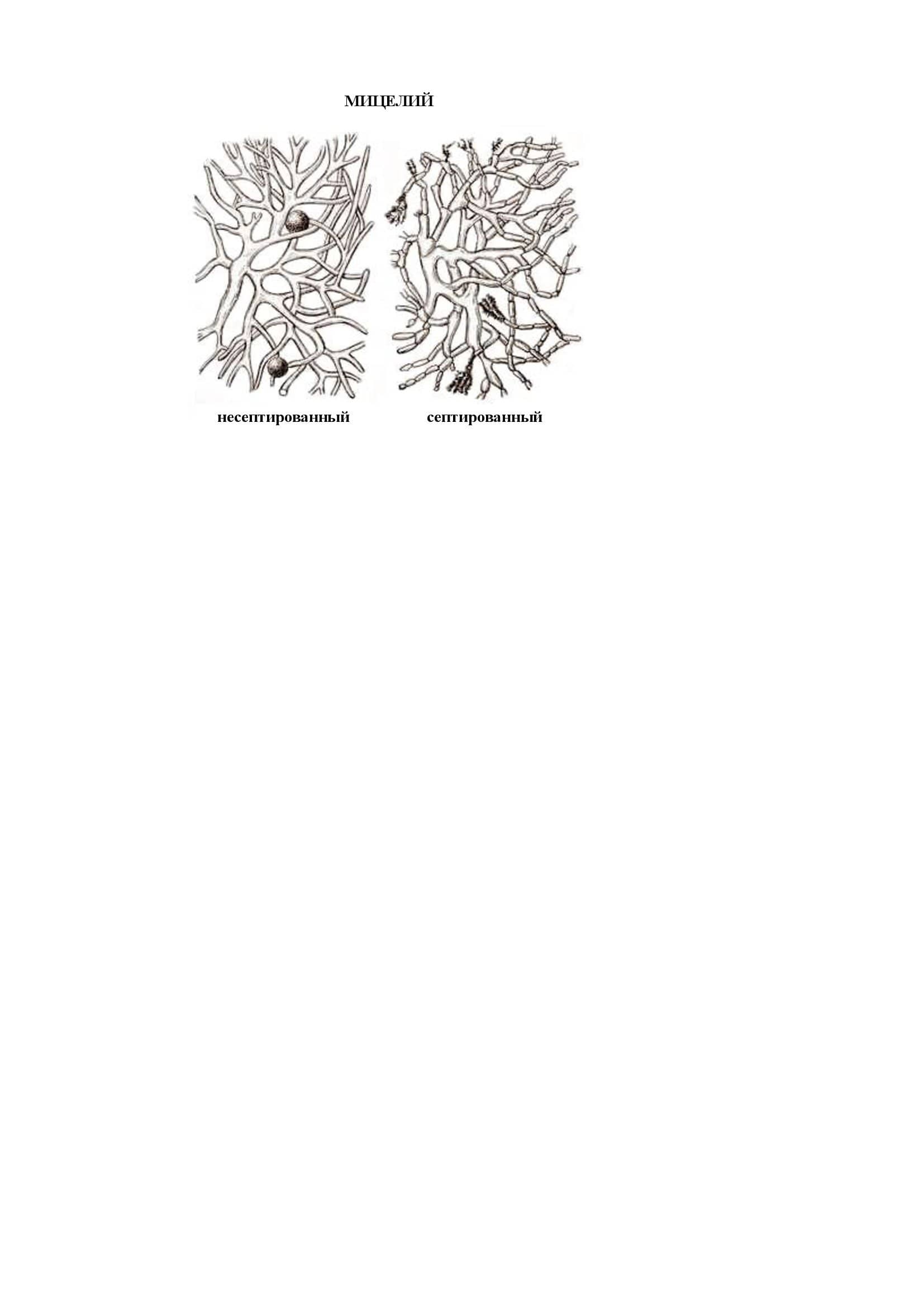 У низших грибов, таких как Mukor, мицелий несептированный.