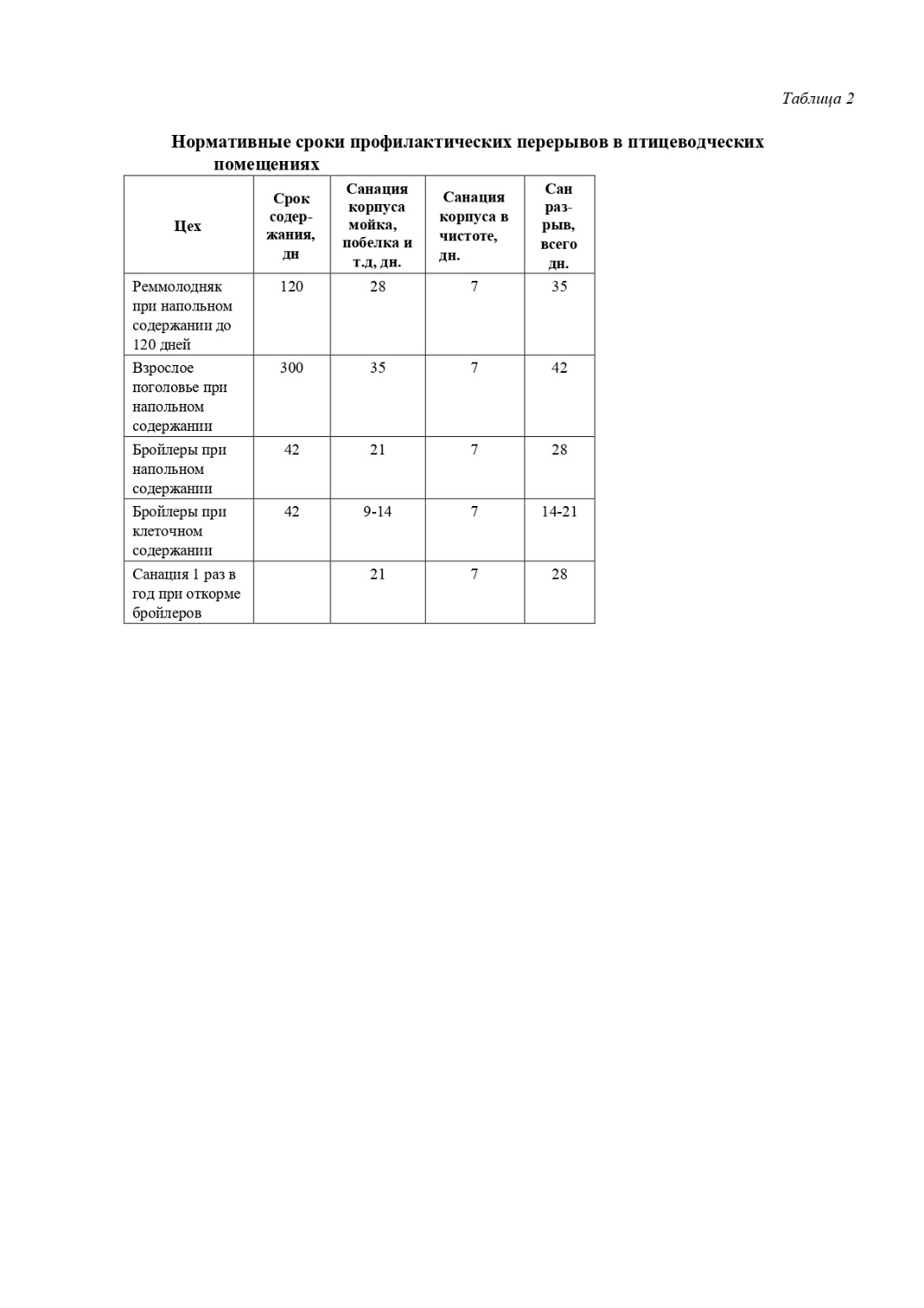 В Таблице 2 представлены нормативы по срокам профперерывов Росптицесоюза.