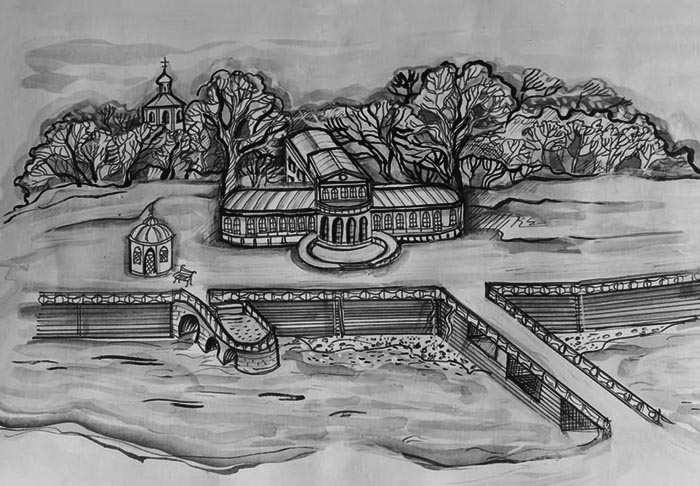 Рис. 4. Общий вид размещения большого дома имения «Щитинка» и второй плотины (реконструкция)