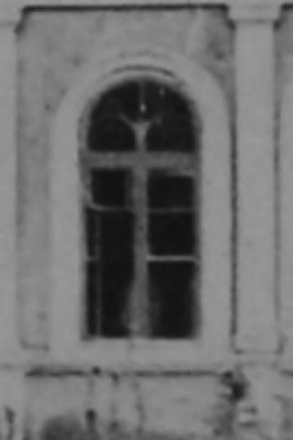Рис. 7. Фото окна с витражом, 60-е годы ХХ в. Видна необычная рама верха окна
