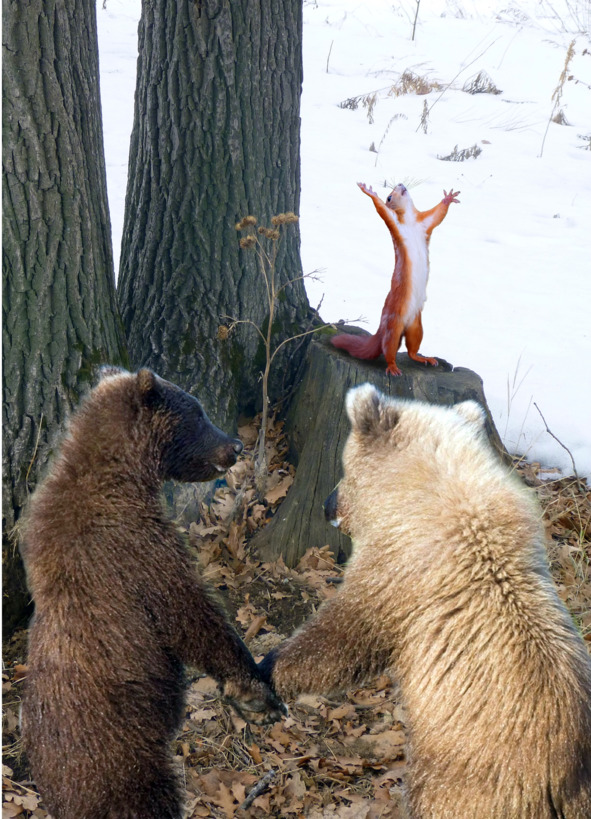 – А-а-а, – звонко заверещал ещё один бельчонок, отскочил назад к медведям и вцепился в лапу Дао.