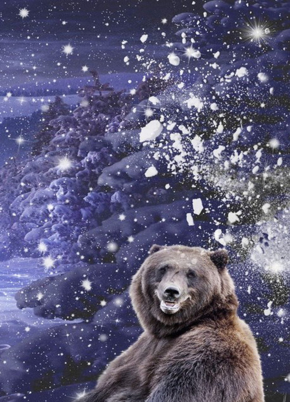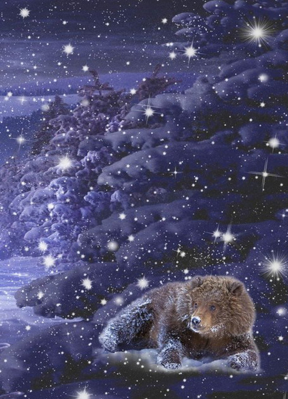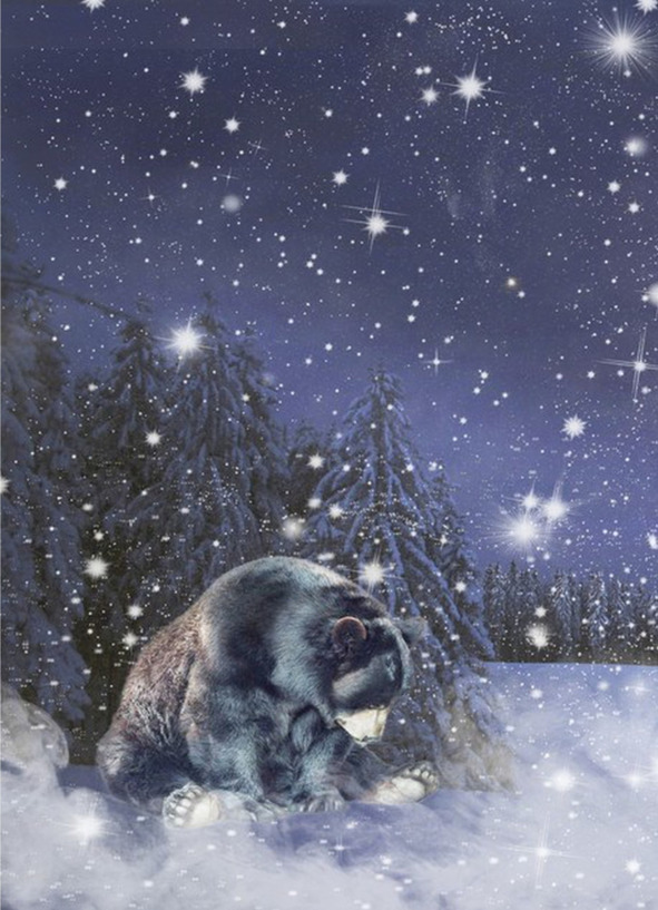 Огромными лохматыми хлопьями падал снег, наряжая лес в новогодний наряд. На тёмно—синем ночном небе яркой мерцающей гирляндой зажглись большие и маленькие звёздочки. Медвежонок Дао весело шагал по лунной дорожке, устремляясь к чуть видному костру. Яркий оранжево—красный огонь звал к себе, притягивал своим теплом и светом, пробуждал волнение от непредсказуемости встреч с друзьями. Ведь в предстоящую новогоднюю ночь в этом необыкновенном месте соберутся все его друзья.