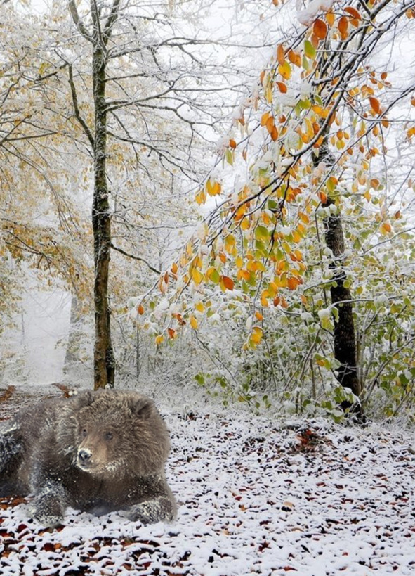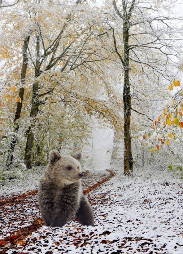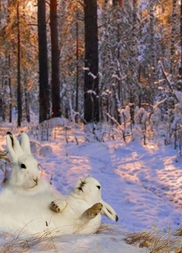 Солнышко скрылось за горизонтом. Легкий морозец опустился на припорошённую снегом траву, и звери поспешили разойтись по домам.